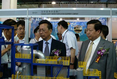 全国人大常委会副委员长陈昌智和环保部部长周生贤参观展览。 《能源世界》记者卫维 摄