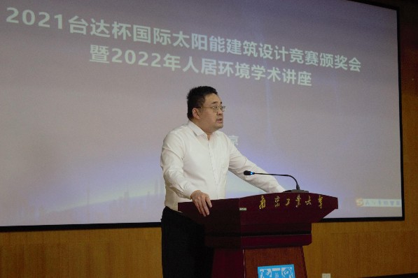颁奖会伊始,南京工业大学副校长陆伟东教授致欢迎辞时表示,南京工业大学建筑学院办学历史悠久、成果丰硕,为国家建设提供了大批高水平人才。在实现双碳目标的宏图中,如何在建筑学科的研究、实践和人才培养中,践行建筑业绿色发展、低碳节能的责任担当和使命,是建筑学科面临的重大挑战及机遇。台达杯国际太阳能建筑设计竞赛作为优秀的设计和交流平台,必将对建筑学科的发展起到积极的推动作用,希望南京工业大学能与竞赛一起,为实现“双碳”宏伟目标贡献力量。
