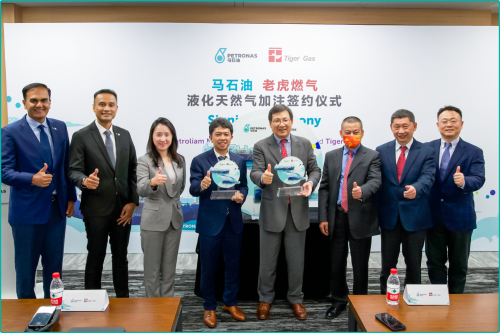 马石油下游石油精炼、营销和贸易副总裁Ahmad Adly Alias先生,马石油中国主席、首席代表李焱女士,马石油液化天然气加注业务销售负责人Mohd Firdaus Bin Kamilrudin先生,老虎集团主席Gerry Wang先生、老虎燃气副主席薛朝春先生、老虎燃气总裁许俊峰先生、老虎燃气副总裁瞿建波先生等双方高层领导共同出席了此次庆祝活动。
