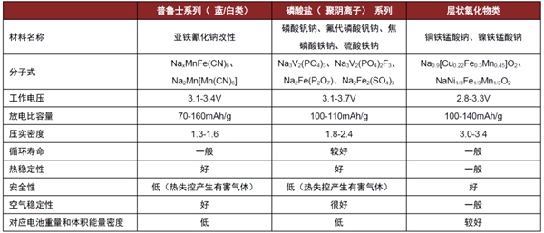 综合来看,技术成熟度最高的层状氧化物在能量密度上,具有最大的开发潜力,且具有倍率、低温性能优势,但缺陷是循环寿命相对较低。