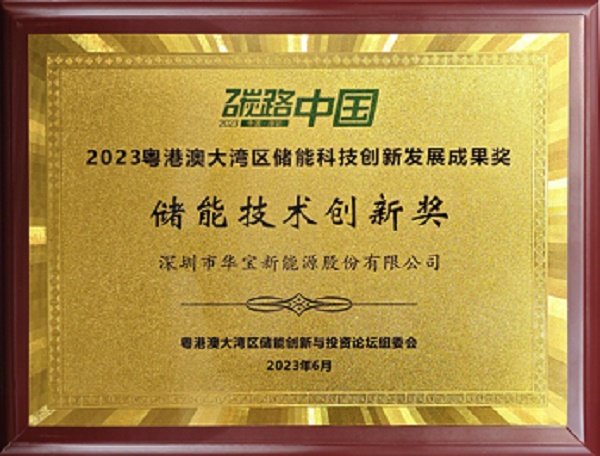 | 华宝新能荣获2023粤港澳大湾区储能科技创新发展成果奖 |