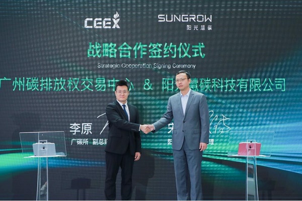 会上,权威第三方机构——广州碳排放权交易中心,与阳光慧碳签署战略合作协议,双方将就“双碳”领域开展更深度合作。广州碳排放权交易中心副总经理李原为本次大会颁发了碳中和认证证书,阳光慧碳副总裁宋诗作为代表进行领取。