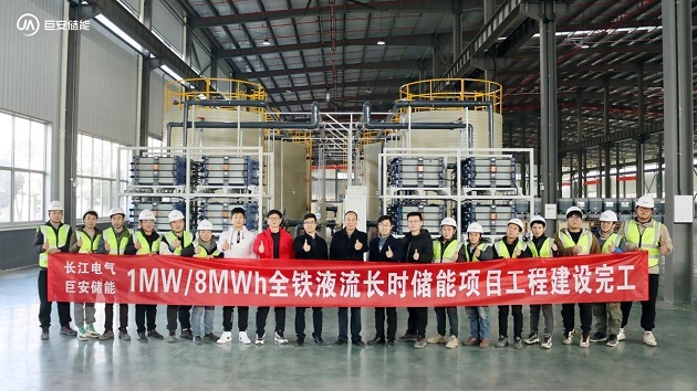 近日,由巨安储能武汉科技有限责任公司(简称巨安储能)与湖北长江电气有限公司(简称长江电气)共同打造的“1MW/8MWh全铁液流储能项目”的主体工程,已顺利完工。