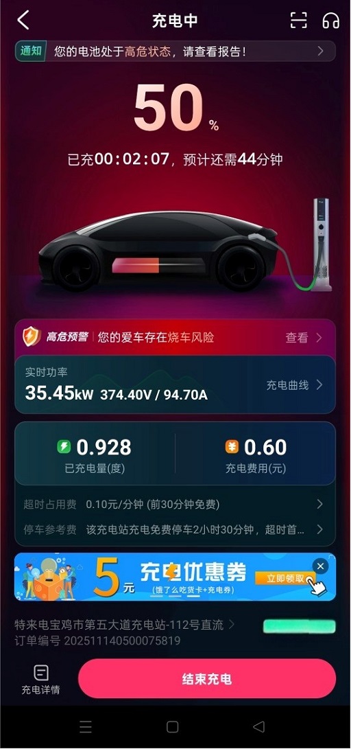 有经常在特来电充电的车主发现,如果车辆出现电池异常,特来电会通过APP告知车辆的问题和故障,提前维修以避免引发更大的问题。比如今年11月,一位陕西的车主就发现,每次在特来电充电都显示电池处于高危状态,而去4S店又查不出问题,通过询问特来电客服后发现,这辆车自11月起,充电结束时的压差持续增长,存在电池不均衡问题。最终更换电池后,车辆才处于正常状态,避免了烧车事故的发生。