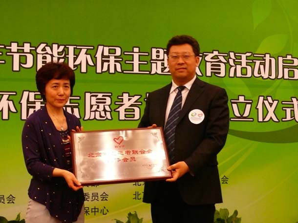 4月22日,北京市节能环保志愿者协会成立仪式在京民大厦举行,北京市志愿服务指导中心主任郭新保为北京市节能环保志愿者协会授牌。来自北京市的青少年节能环保志愿者100多人参加。