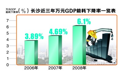 昨日从市能源办获悉,长沙9个区、县(市)2008年万元GDP能耗降低率均完成4%的预定目标,全市能耗降低率达到6.1%,累计完成“十一五”目标进度的71.44%。