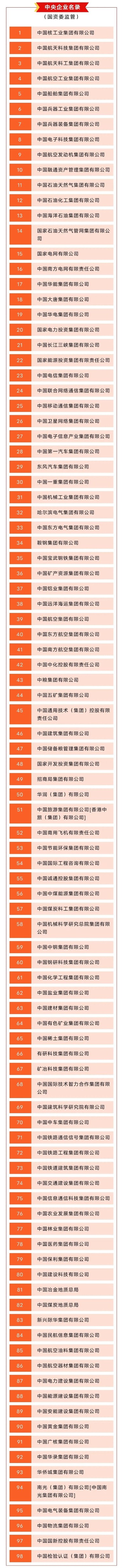 日前,国务院国资委网站公布最新中央企业名录,详细如下: