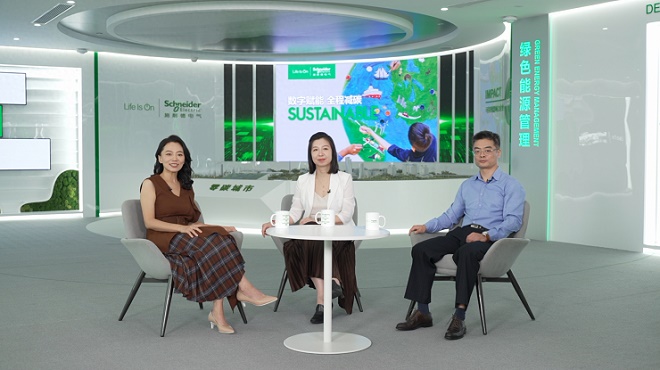 从左至右依次为:施耐德电气数据中心行业市场经理马莉莎、中讯邮电设计院电源首席工程师杨瑛洁、施耐德电气配电咨询专家杨迟