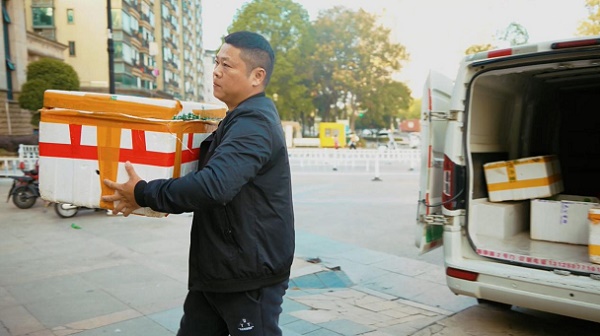依次为团长店、菜鸟驿站等站点送完货后,喻师傅来了此行的最后一站,这次的目的地是位于老街区的一家生鲜店。这个街区的道路大都狭窄曲折,房屋密集,两侧的老房子仿佛“触手可及”,居民们或站在门口闲聊,或骑着电动车经过,偶尔还有小孩突然窜出,对于一般的面包车来说,这简直就是噩梦般的存在,然而喻师傅和他的东风御风EM27L却能轻松应对。在拐过一个急弯后,目的地到了。“老板螃蟹到了,放哪里,要出来检查一下吗?”店老板是个率直的小伙子,他说:“喻师傅来啦,就放门口吧,检查啥啊,赵老板的货我一直放心。”高品质为赵老板赢来了信赖,而东风御风EM27L则为喻师傅赢来了尊重与时间。